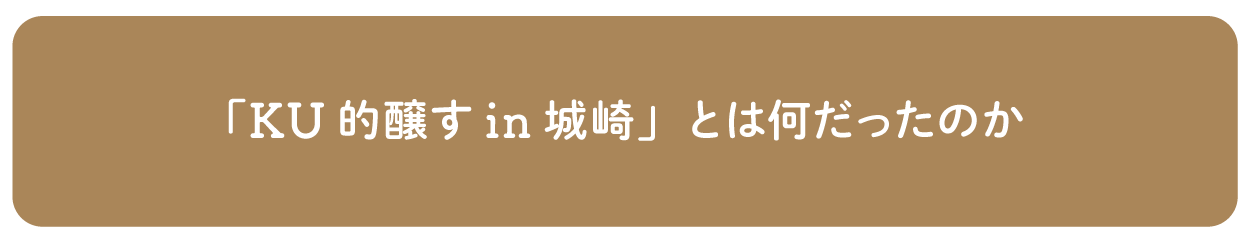 城崎での探究を「KU的醸すin城崎」という作品に昇華させた結果きゅうかくうしおが共有できた発見は、集団として、コミュニティとして、我々が「待つ」こと「受け入れる」ことの意味を知ったということなのではないか、という考察に至った。他者の主張や考えをどのように受け入れ、取り込み、コミュニティを形成するに至るを見届けるのか、あるいは誘(いざな)ってくのか。
